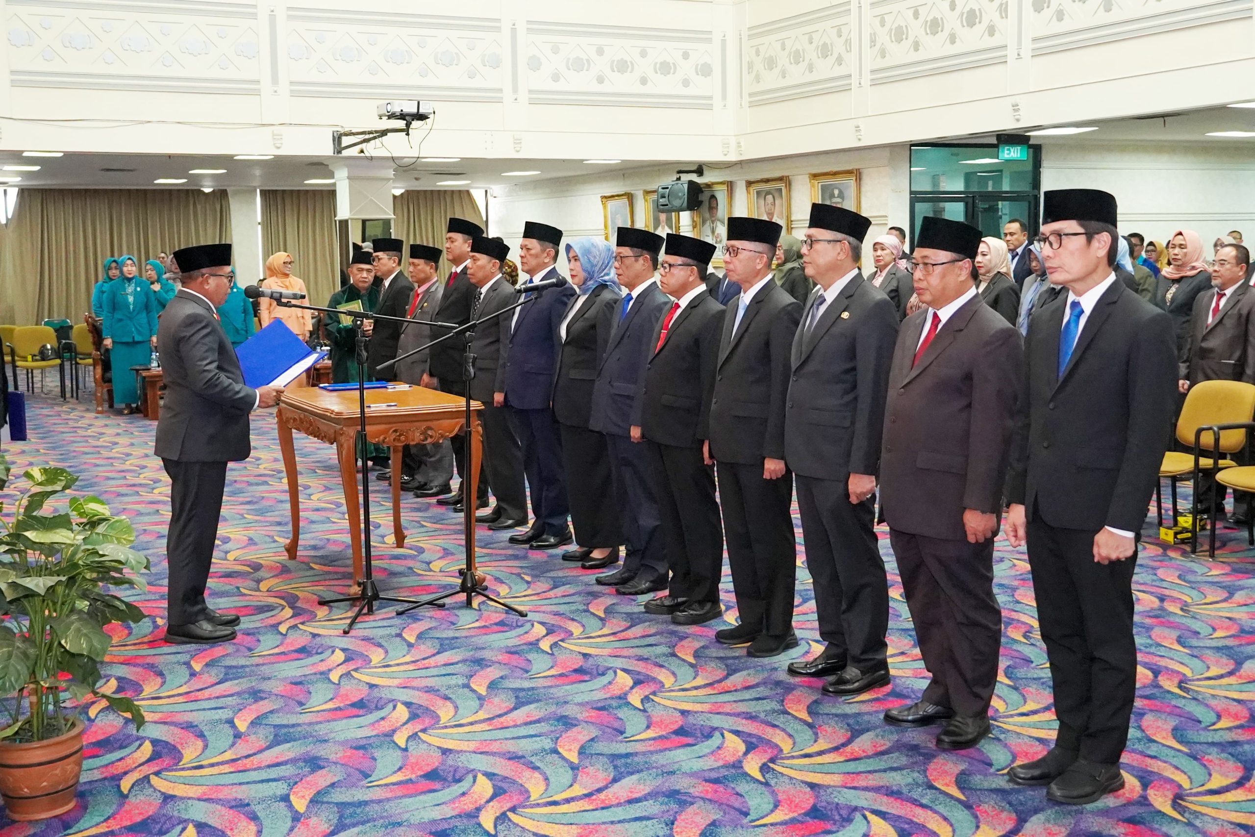 Bandar Lampung — Pj. Gubernur Samsudin melantik dan mengambil Sumpah/Janji Jabatan 12 Pejabat Pimpinan Tinggi Pratama di lingkungan Pemerintah Provinsi Lampung, di Balai Keratun Lt. III, Jumat (7/2/2025).