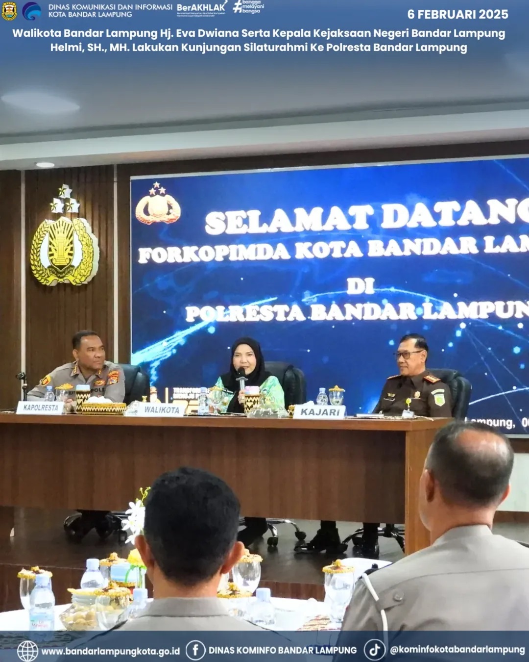 alikota Bandar Lampung Hj. Eva Dwiana Serta Kepala Kejaksaan Negeri Bandar Lampung Helmi, SH., MH. Lakukan Kunjungan Silaturahmi Ke Polresta Bandar Lampung, Kamis (6/02/2025).