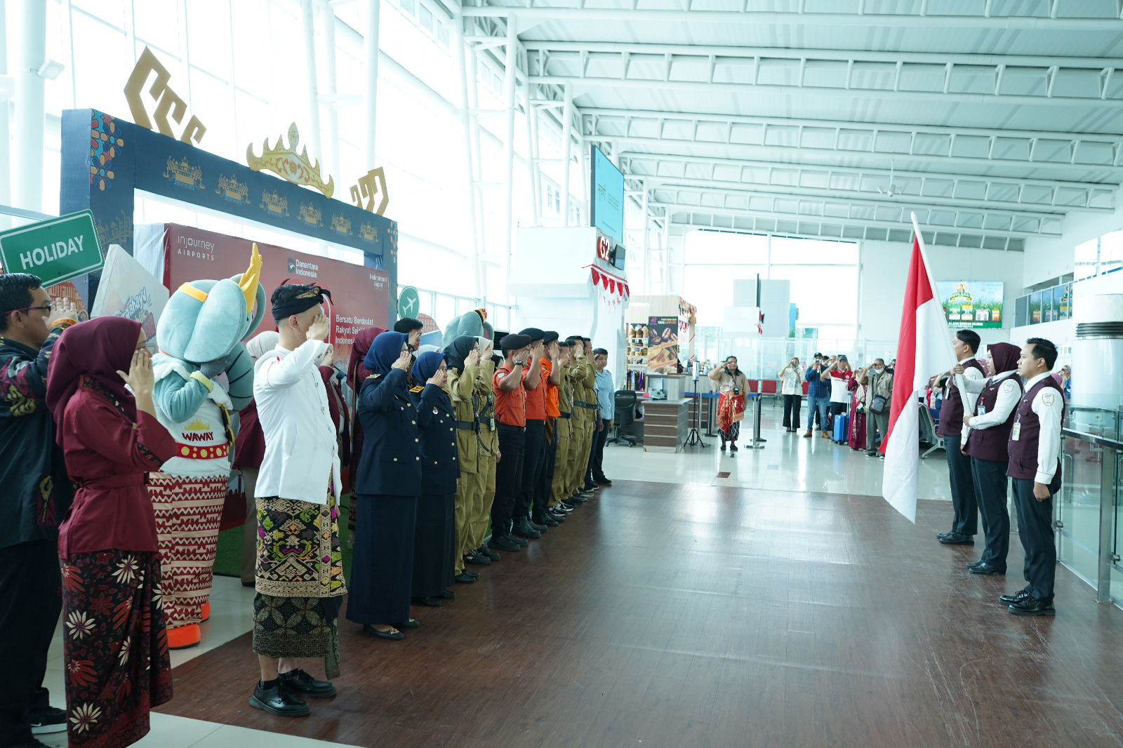 Peringatan 17 Agustus di bandara juga akan diwarnai dengan nuansa kemerdekaan seperti pemasangan atribut merah-putih, pemutaran lagu-lagu nasional di terminal, serta upacara internal yang diikuti seluruh insan bandara.