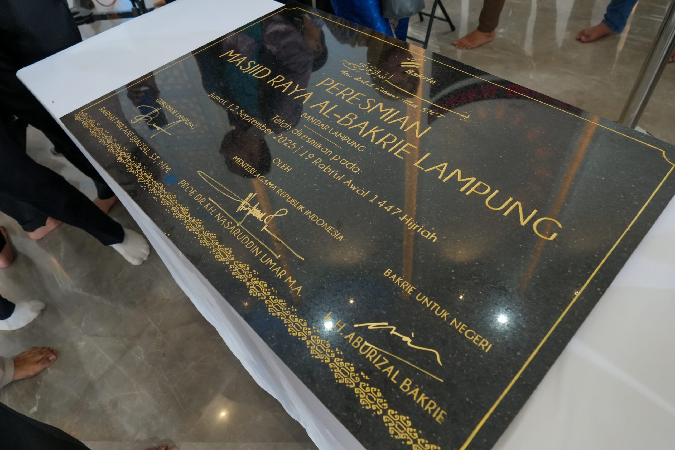 Puncak acara Peresmian Masjid Raya Al-Bakrie Lampung dilakukan dengan prosesi