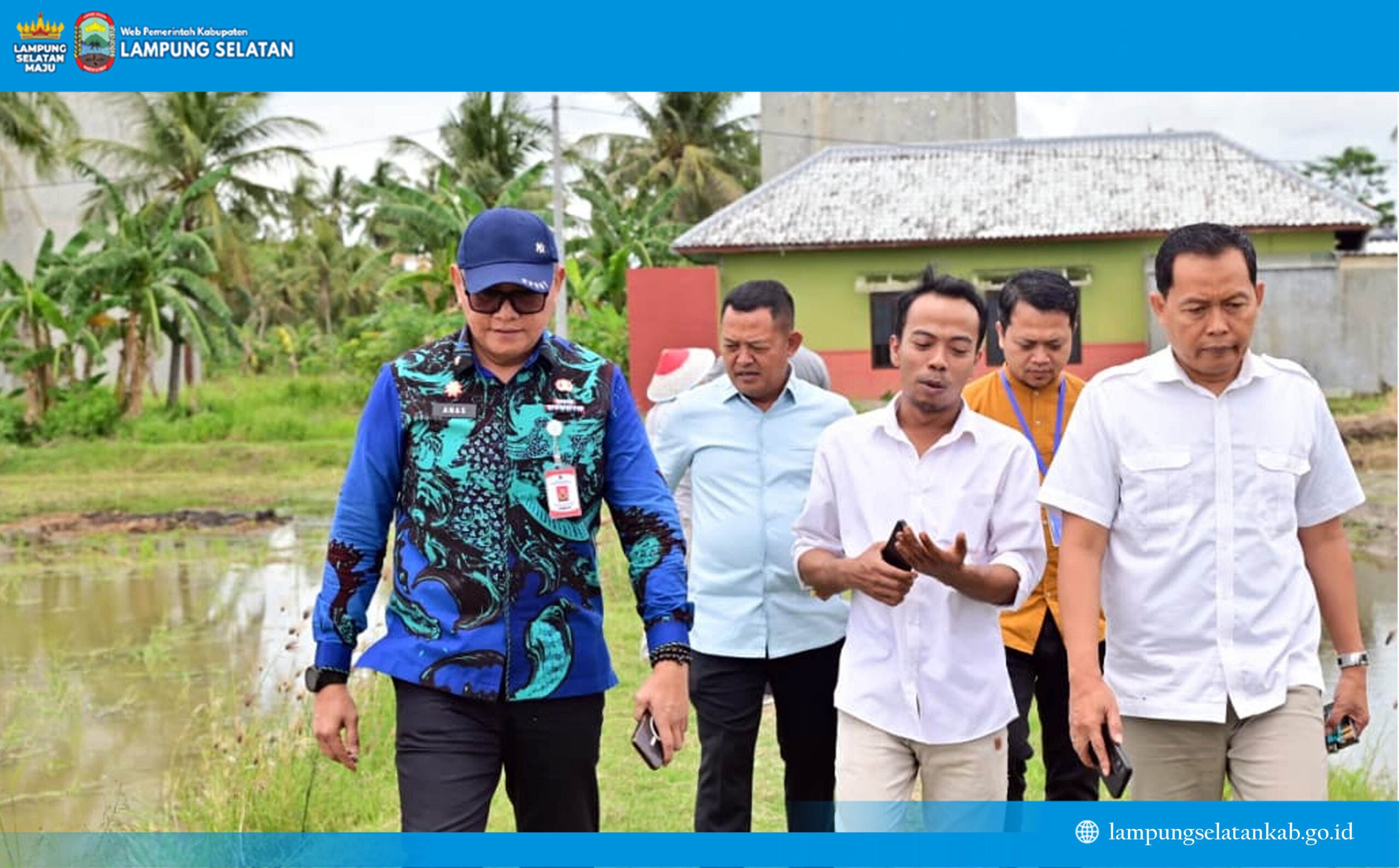 Kepala Dinas Komunikasi dan Informatika (Kominfo) Lampung Selatan, Anasrullah, bersama Ketua BPH Yayasan Batutta Bangun Negeri Universitas Indonesia Mandiri (UIM) Toto Priyana, Direktur Riset, Inkubasi Bisnis, dan Kualitas UIM Sigit Apriyanto, meninjau langsung lahan percontohan milik Kardiyansyah, anggota kelompok tani setempat yang menjadi pionir penerapan teknologi tersebut, Jumat (24/10/2025).