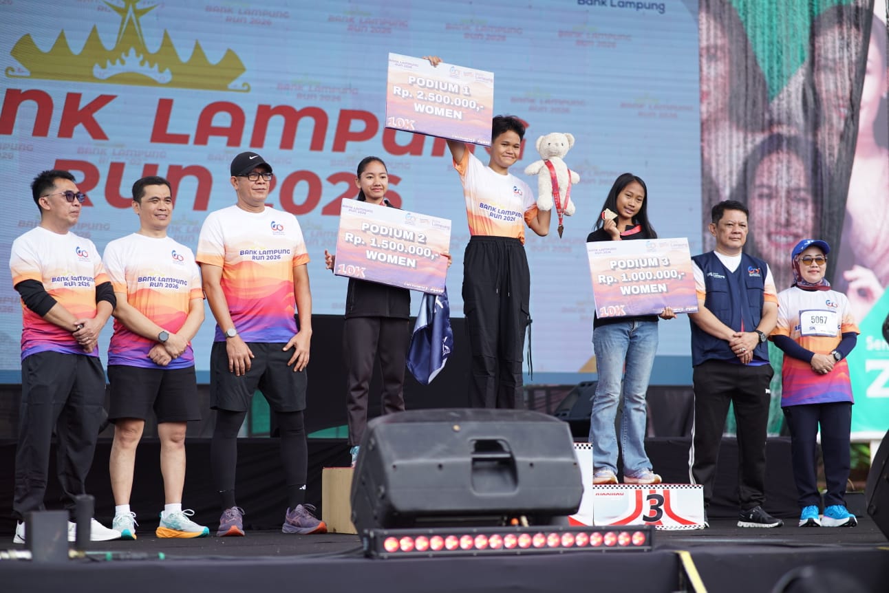 Bandar Lampung – Ribuan masyarakat tumpah ruah mengikuti ajang Bank Lampung Run 2026 dengan kategori lari 3K, 5K dan 10K, yang menjadi puncak peringatan enam dekade bank kebanggaan masyarakat Sai Bumi Ruwa Jurai di Tugu Adipura Bandar Lampung, Minggu (8/2/2026).