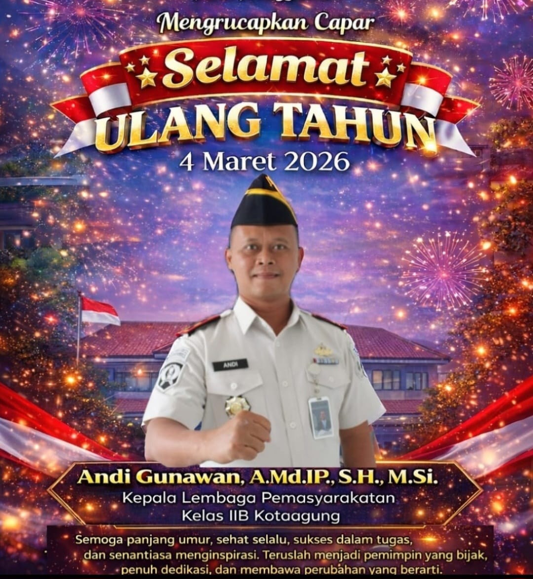 Tanggamus –indeks Republik- Ulang tahun bukan sekadar penanda bertambahnya usia, melainkan momentum refleksi atas pengabdian dan tanggung jawab yang diemban. Pada 4 Maret 2026, Kepala Lembaga Pemasyarakatan Kelas IIB Kotaagung, Andi Gunawan, A.Md.IP., S.H., M.Si., kembali diingatkan pada satu hal penting: amanah negara yang melekat di pundaknya.